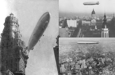 Durante el apogeo de los dirigibles, Alemania quería demostrar al mundo su poderío tecnológico, las imponentes naves eran ideales para esos propósitos. En 1928 el “LZ 127 Graf Zeppelin” en un vuelo transoceánico logró unir las ciudades alemanas de Friedrichshafen con la norteamericana de Nueva York, ese fue el punto inicial para una serie de viajes a las ciudades mas importantes del mundo. En 1930 llegó a Brasil, el capitán Hugo Eckener lamentó no poder llegar a Buenos Aires, pero al parecer nadie estaba interesado en construir unas simples torres para su amarre. Con mas interés alemán que argentino en el evento, el propio Eckener se comunicó con autoridades militares locales a fin de concretar el viaje varias veces pospuesto. El ejército Argentino preparó el lugar para su aterrizaje en el predio de campo de Mayo, donde 200 soldados a cargo del Capitán César Villafañe construyeron las torres de amarre con las especificaciones que llegaron de Alemania. La fría y despejada mañana del 30 de Junio de 1934, el imponente Graf Zeppelein de 236 mts de largo e impulsado por 5 motores Marybach-VI-2 surcó el cielo de Buenos Aires hasta posarse a escasa altura sobre el Congreso de la Nación, luego pasó sobre la Plaza de Mayo, Recoleta, Palermo y Belgrano, dio un amplio giro y se dirigió al barrio de La Boca, luego se dirigió al oeste hacia su destino final en Campo de Mayo donde se posó plácidamente a las 8:45. El capitán invitó a las autoridades militares a ingresar en la nave y admirar su tecnología e imponentes proporciones, solo una hora después se elevó para pasar nuevamente sobre la ciudad de Buenos Aires y perderse en el horizonte del Río de La Plata rumbo a Montevideo. El capitán Eckener se comprometió en nombre de la empresa en regresar en 1938, pero la tragedia del Hindemburg en 1937 acabó con la era de los dirigibles rígidos y la visita nunca se realizó.